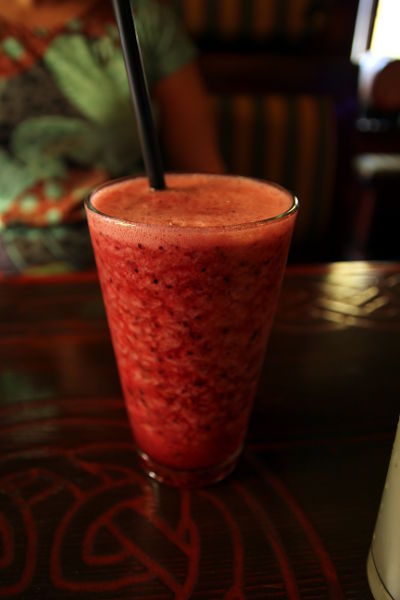 Să nu uităm însă adevăratul motiv pentru care am ajuns acolo, adică acela de a testa oferta lor. Am ajuns pe la ora prânzului şi pe măsură ce stăteam localul se umplea, lucru pe care pe noi ne-a surprins într-un mod plăcut având în vedere că la urechiile noastre nu ajunsese încă informația că acest local a fost deschis și nu au făcut nici foarte mult tam-tam la deschidere. Deoarece meniul era deja pe masă (mie personal îmi place acest lucru) şi fiindcă afară era foarte cald am ales câte o limonadă. Nuţi a mers pe varianta clasică, iar, eu am ales limonadă cu fructe de pădure, opțiune pe care nu o regret deloc! Limonada este chiar mare, iar fructele de pădure se folosesc în cantitate suficientă încât să simţi şi gustul, nu doar pentru colorit. În timp ce limonadele erau pe drum, am avut timp să studiem şi meniul. De apreciat iarăşi a fost faptul că nu a venit nimeni să ne streseze tot la două minute cu clasica întrebare: V-aţi hotărât?