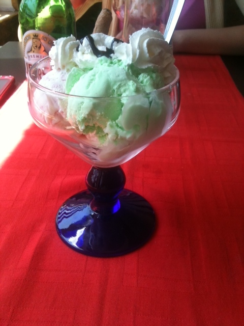 Îngheţata a fost foarte bună, dar în stilul clasic, din lăzile frigorifice care apar peste tot pe timpul verii, ornată cu frişcă şi un baton tip Finetti Sticks.