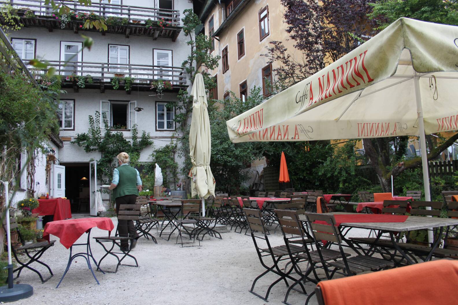 Restaurantul aparţine de pensiunea cu acelaşi nume, Gasthof Simony şi este amplasat la parterul clădirii, având şi o terasă în curtea interioară a acesteia, pe malul lacului Hallstatt. Noi am stat întotdeauna la măsuţele rustice de pe terasă pentru că priveliştea spre lac şi munţi este absolut superbă. Trebuie să menţionez şi că fiecare băncuţă / scaun are propria păturică portocalie (curată de fiecare dată!) pentru serile răcoroase.