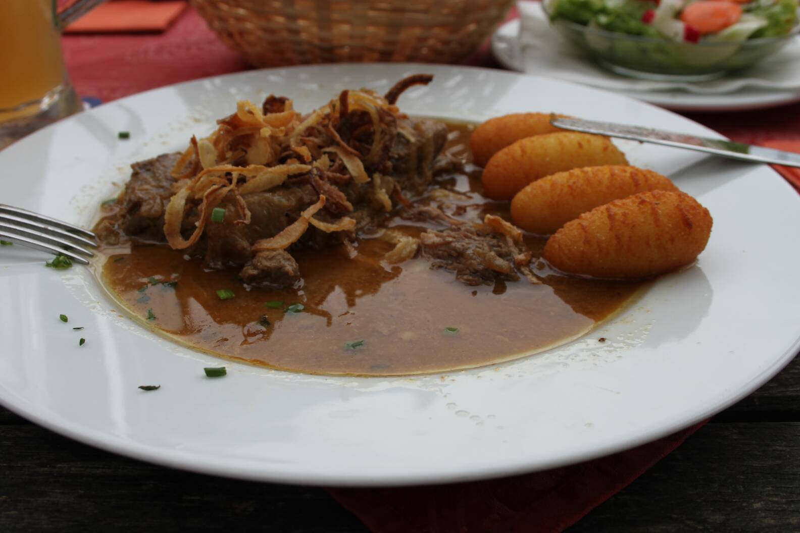 - gulaş de vită cu găluşca tradiţională din pâine şi condimente – 8 euro