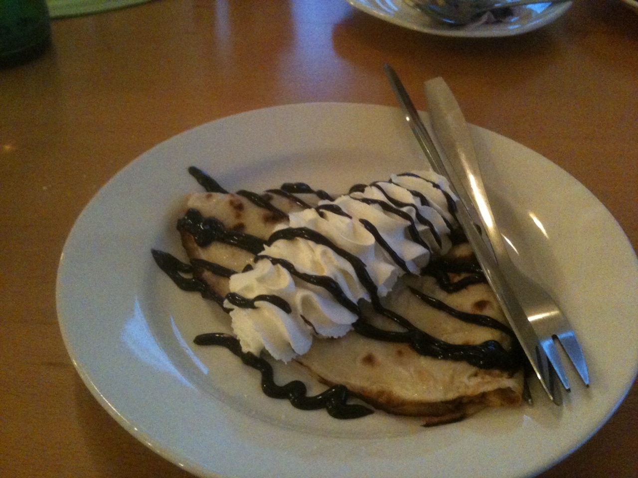 Am apreciat în mod deosebit salata asortată şi mujdeiul. Bineînţeles, am ajuns cu greu la partea de desert, dar ulterior ne-am felicitat că l-am comandat şi pe acesta. Clătitele au fost foarte bune, cu suficientă umplutură, moi de se topeau în gură. Nu am apreciat în mod deosebit frişca pentru că nu sunt amatoare de aşa ceva, însă şi aia a fost ok.