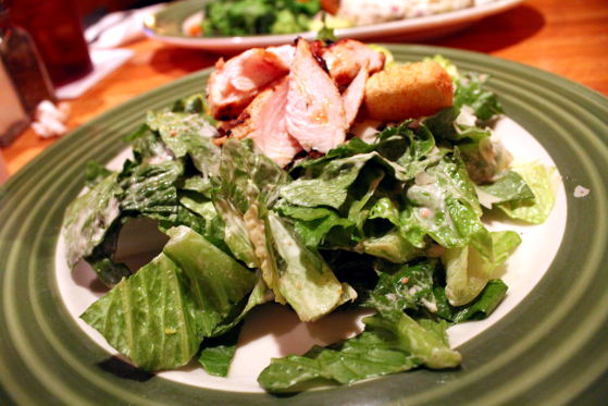 La a doua cină acolo eu am ales o variantă și mai light de cină, jumătate de salată Caesar. Da, în poza de mai jos e doar jumătate de salată. Prima dată când am fost destul de inspirată încât să nu îmi comand o porție întreagă de mâncare. Bună salată, bună de tot și sățioasă pe deasupra. O salată Cesar în adevăratul sens al cuvântului.