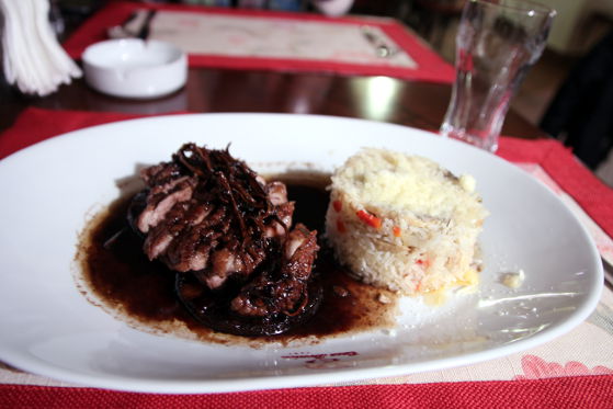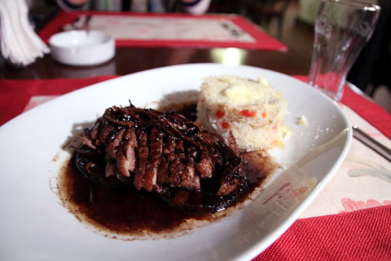 Chiar înainte să mergem acolo v-am întrebat pe Facebook ce ne recomandați să mâncăm și am observat că pieptul de rață e tare faimos și îndrăgit. M-am uitat și pe foursquare să văd ce zice lumea și am văzut că și acolo apare menționat de câteva ori așa că nu am rezistat tentației de a-l comanda.