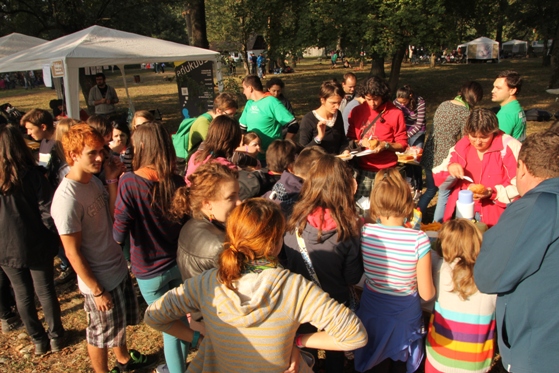 Sâmbătă, 15 septembrie, am venit cu sacoşele pline de ingrediente proaspete pentru atelierul de sandwich-uri. Imediat ce ne-am făcut apariţia şi am început să tăiem roşiile, ardeiul, brânzeturile şi mezelurile, o coadă mare de oameni s-a strâns în jur, aşteptând cu nerăbdare semnalul de start. Prichindeii au fost cei mai punctuali şi cei mai pofticioşi. Ca atare, au avut prioritate în a-şi pregăti sandwich-uri consistente, bogate în calorii. Nu de alta dar foamea vine mai repede după o jumătate de zi în aer liber, cu ateliere creative şi multă distracţie.