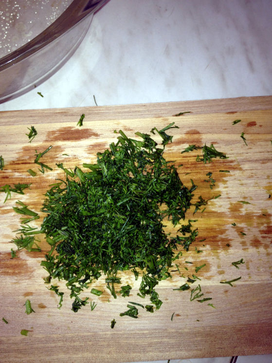 - Se toacă mărunt, cu energie şi bucurie mărarul.